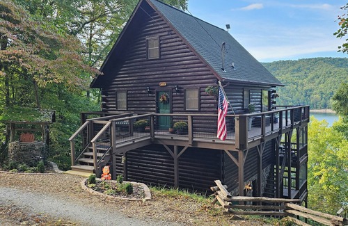 The Hemlock Haven is a beautifully decorated log cabin on Lake Nantahala with stunning lake and mountain views. It features two bedrooms, two and a half baths, a loft, and a bonus room. Enjoy multiple private porches and decks on all levels, an open floor plan, large windows, and hardwood floors. Accommodations include a king bed, queen bed, three twins, and a loft. The master has a private screened porch. Access the private boat dock across the street. Stairs required for cabin and dock access..