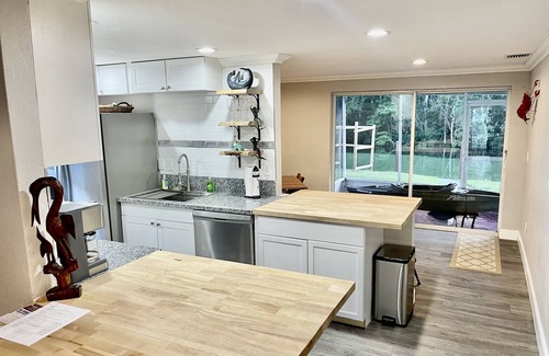 completely equipped kitchen with kayaks, paddles, 5 life vests, & fishing poles for your outdoor adventures while exploring the weeki wachee river, the gulf of mexico, hospital hole, cypress canal, jenkins preserve and the back yard!