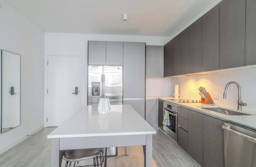 the juliet xi is a modern studio on the eighth floor in midtown east, new york Elevator access, a kitchen, Wi-Fi, air conditioning, and in-building laundry ensure a stylish stay for two guests..