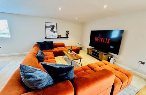 at the heart of the home is a breath-taking open-plan living, dining, and kitchen space—designed not just for comfort, but for togetherness Whether you're gathering around the oversized 12-seater sofa for movie marathons on the 70” Smart TV, challenging each other to a game of pool, belting out tunes on the karaoke machine, or diving into retro fun with the arcade game and board games galore, this is a place where laughter lingers and memories are made.