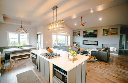 Relax in total comfort in this beautiful brand new home with 6 bedrooms, 3 bathrooms, and a stunning view of the Lewis and Clark Lake and it’s grand Chalkstone Bluffs in Yankton, SD. A perfect location for family get-togethers or single family use. Enjoy coffee on the deck while watching the boats sail by or relax on the cozy couch by the fireplace. Within walking distance of the L&C Marina as well as walking and bike paths along the water’s edge. Book your next vacation at The Lake House.