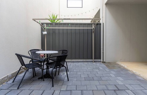 combining convenience with easy-breezy living, this contemporary townhouse offers a fantastic base for those wanting to explore adelaide It has an open plan design that floods the interiors in natural light and opens to a courtyard, perfect for summer, while central heating and air-conditioning caters to all seasons.