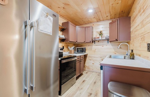 The Lazy Maple is so excited to have you! Your relaxing getaway in Red River Gorge will have 2 bedrooms featuring a KING and queen bed, 2 full bathrooms, and a pullout sofa with an extra queen bed. enjoy the fire pit, hot tub, grill, arcade machine, inside fireplace, two smart tv's and more!
