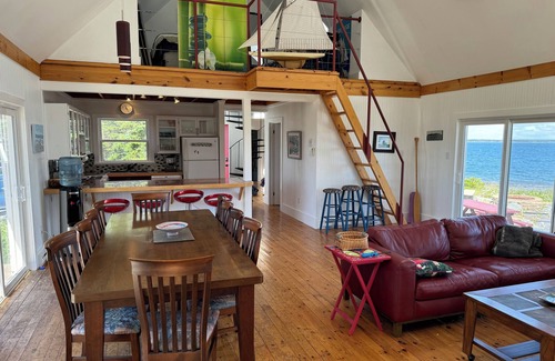 the lighthouse is 3 bedroom and loft, inactive lighthouse which was built in 1989 as a replica of the traditional 44 foot high nova scotian wooden lighthouse which at one time dotted the coastline of the province to keep mariners safe The house has 4 queen sized beds and is spacious, modern and comfortable. There are incredible views in all directions with the pristine waters of Mahone Bay and the open Atlantic Ocean on both sides of the property. The Lighthouse is oriented so that guests can enjoy the sunrise and sunset from the large patio. There is ample parking for 5 vehicles. A large fireplace and unlimited firewood makes it cozy inside when the Atlantic storms rage outside. The beach is a short walk away and there is a spare mooring if you have a boat to bring on your adventure.