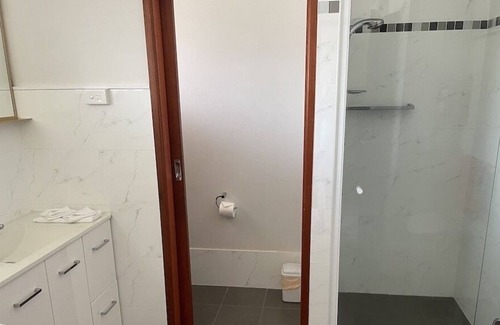 quiet, spacious unit with open plan kitchen, dining and lounge room, with all the appliances for your stay, tv, ceiling fans, modern bathroom, comfortable beds, undercover parking, bbq available
