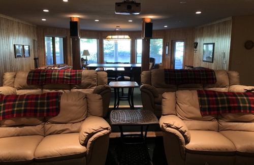 venture downstairs to discover a haven of entertainment—a sizable game room and a theater room with an adjacent second kitchen The lower level hosts four more bedrooms, each with its own bathroom, ensuring ample accommodation for every guest.