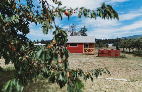 The Mac Shack is located by a grove of MacIntosh trees on a 20 acre farm in the BX area of Vernon. The cabin was first built by homesteaders back in the early 1900's and was a pickers cabin for many years when the fields around were full of Spartan trees. We completely renovated the interior of the cabin so that it is fully equipped with fresh and new, well insulated and set up for a comfortable stay. We have great views overlooking the North Okanagan and Vernon, minutes away..