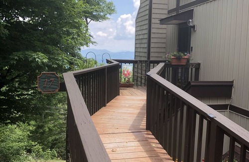 THE MOUNTAINS ARE CALLING! Amazing all season, 80 mile views (4700 ft) from the great room windows and expanded deck never get old! Exceptional, level entry, 3 bedroom, 2 bath villa provides a wonderful and relaxing retreat setting for winter snow, cool summers, and fall colors. Beech Mountain Club golf course views and 8/10th mile (3 minutes) to Ski Beech Mountain Resort. Large great room with gas fire place, fully equipped and updated kitchen, /internet/WiFi, wall mounted flat screen TVs, electric BBQ grill, washer/dryer, Sleeps 6 with king and queen tempurpedic mattresses downstairs and king upstairs. Downstairs guest bedroom includes private sink/vanity. Ski Beech Mountain includes skiing, snowboarding, tube run, and ski village. Beech Mountain ski lift to 5506 sky bar and downhill mountain biking trails in summer. Access to Beech Mountain Club available with transfer of social membership includes heated pool, dining, and more. Hiking, fishing, Grandfather Mountain, Linville Falls and Caverns, Banner Elk, Blowing Rock, Seven Devils Zip Line, and Blue Ridge Parkway are within short drives. Small dogs considered for pet fee in summer/fall (please provide pet details with rental request). Dogs not allowed during winter ski season. Deer and wildlife galore..