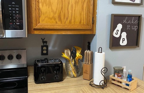 our beech bunny is a 2 bedroom (queen/2 twins), 2 bath first floor (stairs still required), pet free condo at beaver ridge resort The unit boasts new stainless appliances (including a dishwasher) and mountain chic decor with local art throughout. Look for special touches like the owner's guide to the area, games for the family and all the basics you'll need for carefree packing (linens, towels, shampoo, conditioner, soap, coffee, condiments, pantry items, detergent and dishwasher tabs). Firewood is provided at no cost and is convenient to access just steps from the front door (seasonal).