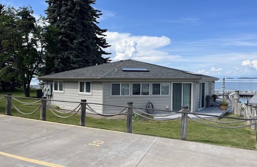 Enjoy a two bedroom luxury condo on the shores of Flathead Lake. A living room with a panoramic view of the lake through sliding glass doors wrapping around the entire front of the condo. You will never get tired of the lake view. Bring your water toys or rent some nearby to experience the beautiful, clean water of Flathead Lake (3 boat rental locations within a mile).