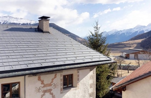 In the heart of the Venosta Valley, in the sunny Laudes, a hamlet of Malles, on the boundary with South Tyrol, Switzerland and Austria, is located this old Ladin house. It was built in 1582 and wisely renovated in 2009/2010, combining art and functionality, design and comfort, tradition and innovation. Crossing the main entrance, the large atrium immediately appears with the work of the well-known artist Esther Stocker, who enjoys decorating a functional space such as a wardrobe and a bathroom with her very recognizable geometric style, transforming it into a true work of art. On the same level we find the Room Stube, with the magnificent traditional majolica stove, inserted in an environment rich in details such as the Bow-Window and the characteristic wooden boiserie, next to it the kitchen with fireplace, it has been recovered from the ancient space of the speck smoking, the vaulted ceiling has been painted black, remembering the ancient soot, the living-dining room overlooks directly the beautiful garden through the balcony, south-east oriented.