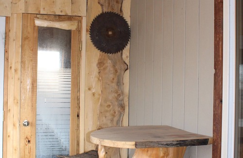 Escape to this wonderful studio in picturesque Montevideo. This cozy retreat features 1 queen bed, 1 full bed, and 1 bunk bed, perfect for small groups or families. Enjoy the convenience of WiFi, a washing machine, and heating during your stay. The bathroom offers a refreshing shower and a hair dryer for your convenience. A great place to call homebase while you're away, we hope you enjoy your stay. This is the former Studio of Local Artist Douglas Pederson. A lot of his artwork is on display as sort of a museum/ display space.