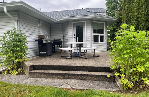 our home has 3 bedrooms and 2 full bathrooms The ensuite bathroom has a jetted tub. The living room has comfortable recliners, views, and a TV for those lazy days. The kitchen is fully stocked including a BBQ and smoker on the back patio for all your summertime cooking needs. Regular towels and beach towels are all provided. A washer and dryer are also available for your use.