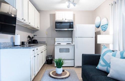 fully furnished WIFI and Smart 50" Roku TV. AC & Heat. Coin Washer/Dryer - Shared in Building. Full Kitchen + Fully Stocked Kitchen with Utensils, Plates, Pots, Pans and Cooking Spices. Complimentary Coffee and Water.