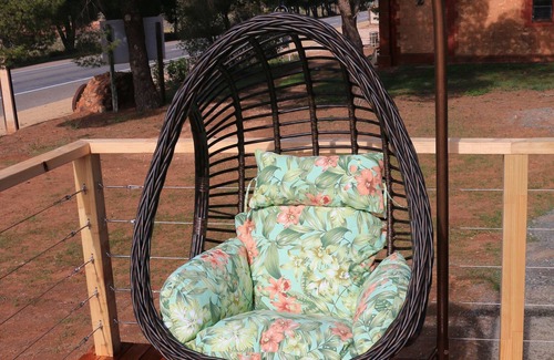 cosy and tastefully decorated inside with many thoughtful and clever design features Downstairs there is a living area, kitchen and bathroom, and upstairs 2 loft bedrooms with authentic Japanese futon beds. The outdoor deck has a very comfortable "egg" chair and table and chairs that overlook the pink lake. A variety of entertainment options including board and card games and karaoke wifi microphones are provided.