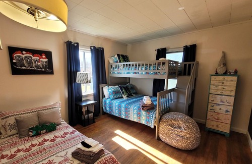 the polar house features a king-size bed in one bedroom with smart tv, two twin-size beds & full bed (bunk bed) with a twin trundle (5 beds total) in the second bedroom with a smart tv, a full bathroom, full kitchen, and high-speed internet throughout