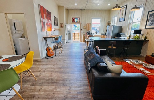 Come stay at the original Power Plant of Canon City, est. 1890. Enjoy the 13' ceilings, large windows with mountain views, and oversized kitchen with lots of space to create. King bed with TV. Pass thru Main bedroom to Bunk Bed room with TV - good for families and close friends. W/D. Walk in shower. Nice little patio out front.