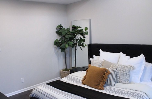 4 very spacious bedroom with one being a hotel style suit with a full bath and another being a master suite with a king bed and high custom ceilings. The home includes a patio deck off street parking as well as a open floor plan perfect for family gatherings..