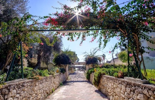 the house is located in a residence with a large garden equipped with a play area for children, outdoor showers and natural caves available to guests.