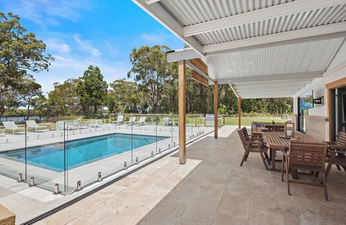 Nestled along the serene Mcleay River in Fishermans Reach, NSW, our Airbnb complex accommodates 20 guests, With 6 bedrooms, expansive dining, multiple outdoor areas, a deck, pool, fire pit, 4 fully equipped Glamping tents, showers, barbecue areas, secure premises for boat's safety. Just five minutes from Southwest Rocks, it caters to families or fishing enthusiasts. Relax riverside, lounge by the pool, or gather for s'mores around the fire pit. This is luxury, relaxation, and adventure combined.