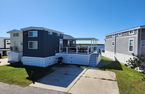 the resort we are located in offers a community pool, playgrounds, and open spaces for children, and adults alike, to run around and have a good time We are conveniently located directly across from a playground, volleyball court, bathhouse and public laundry room. Enjoy a nice open air dinner on the spacious deck and swing the night away on the backyard swing as the sun sets on the bay.