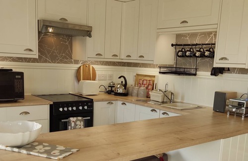 The Stockman's Cabin is a new one-bedroom rural retreat with views of farmland, woods and the Ledbury and Malvern Hills. In the surrounding paddocks you'll find our donkeys, peafowl and poultry. You can even bring your own horses, accommodated in well-fenced paddocks with field shelters and mains water troughs. Excellent hacking on bridleways and quiet lanes to the Malvern Hills and handy when competing at the Three Counties Showground. Situated between the Worcestershire Way and Herefordshire Trail on a network of local footpaths, it's also great for ramblers, riders and cyclists. Bird-watchers can see buzzards and hawks by day and owls in the dusk. Visitors explore the Malvern Hills, historic market towns of Ledbury and Hereford, Cathedrals, National Trust properties, Eastnor Castle and the Morgan Motor Company. You can visit cider mills, breweries and vinyards and attend a range of local festivals and fairs. Popular events at Malvern include the Spring Garden, Agricultural and Autumn Fairs, equestrian and dog events, antiques, vehicles and crafts. There are two pubs and a convenience store within a stiff mile walk and excellent restaurants in Ledbury..