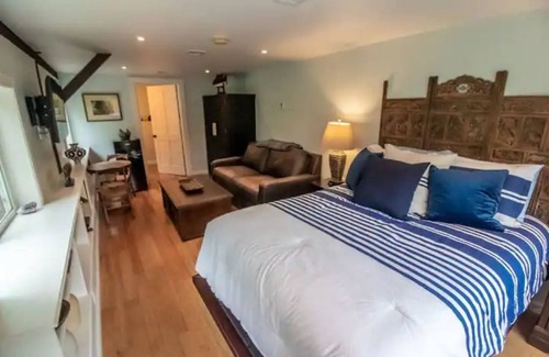 Simply elegant studio located at the Inn at High Falls, lovely restored perfect for a single traveler or couple! The studio is located on a ground floor of the barn which is perfect for people who cannot handle stairs very well. It is one of three self contained units on the property. There is a main house and carriage house. The carriage house contains the studio on the first floor and loft on the upper floor. The cozy space has a mini frig, microwave, and coffee maker. Also, the studio comes with access to the shared back yard. Anything else you need, just let us know!.