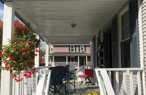 The studio is in the front room of an historic house (circa 1830) on Main St, in Lee. convenient to all of the town's amenities and a part of the Garfield House complex of properties (furnished and unfurnished). This is a small space, but has a queen mattress (Murphy bed - folds out from the wall), couch, arm chair, kitchen, small table, TV, bathroom, private porch, entrance and parking.