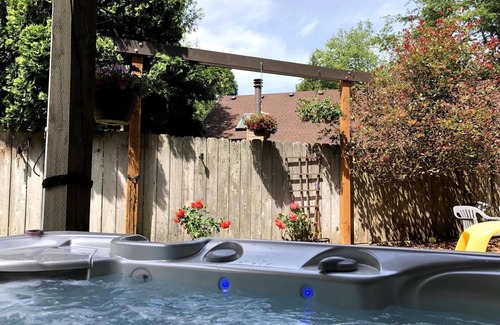 This special place is close to everything, making it easy to plan your visit for 2 (+) people. Nestled in a beautiful residential neighborhood this one room suite has a private entrance and a compact, but cute, ensuite bathroom. The suite is attached to our home where we live year round. You have reserved access to our heated swimming pool in summer, and year round access to our hot tub. The suite offers a queen bed, fridge, Keurig and microwave. We have a single 3 in 1 sleeper chair available for a third person. However, three people in the suite may feel pretty cozy.