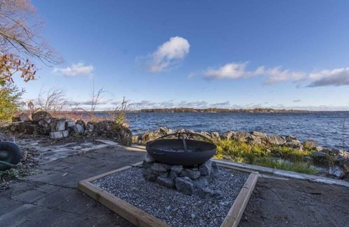 sta license # st- 2023-0094 looking for the perfect vacation with an incredible serene view of water surrounded by lush greens and spacious living space? how about a view of the sunrise from your bed in a large bedroom with a fireplace which walks out to a deck perfectly situated with cozy seating for a relaxing reading break in solitude! with the soothing waves of the lake in the background, calming your senses! perhaps a meal on the second-floor covered deck on the 6-seater dinning table or make smores on the large sectional in front of a gas fire pit! or maybe you would like to enjoy a nice cup of specialty coffee freshly made on the multi function high-end coffee/espresso/cappuccino maker while sitting on the muskoka chairs by the wood fire pit in front of the lake?