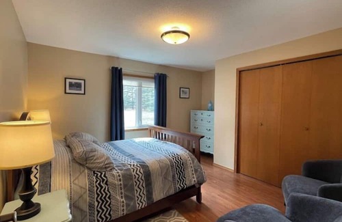 escape to the country for peace and tranquility! relax with the family or a group of friends at this peaceful place to stay that is right next door to the wellness centre if you are needing extra accommodations It's located in the Country outside of Crossfield, AB only 25 minutes north of Calgary, AB. It is a walkout basement with a private entrance, living room, kitchenette, bathroom, and 3 bedrooms. There is a TV with satellite and access to WiFi.