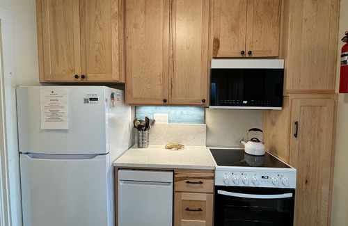 amenities include a fully furnished kitchen, ocean view living room and dining room, hdtv/ dvd player, wifi, fm tuner with ipod cable Be sure to check out our latest addition: a recently added mural painted by Oregon muralist Corie Hinton. It is a visual treat waiting for you when you open the kitchen door.