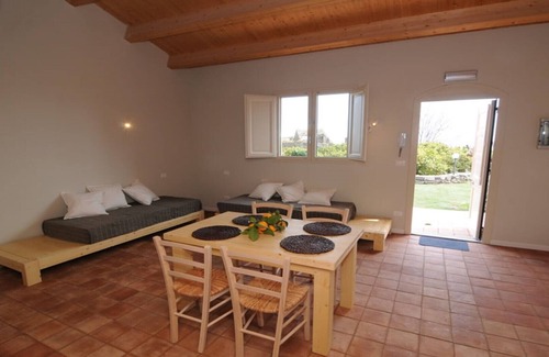 the apartment was built with environmentally friendly materials and is equipped with a tv and a large and welcoming bathroom The apartment for five 5 people, (called "The white house") is spread over two communicating levels and is equipped with a comfortable kitchen, resulting in a refined environment that recalls the Sicilian style.