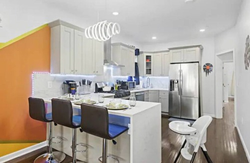 Our 7br home features 2 kings, 4 queens, 2 full, 2 twins (sleeps 24) & just a 5-minute walk to the train & nearby strip with lots of local shops & restaurants. This is the perfect place for small groups, long & last minute stays.
