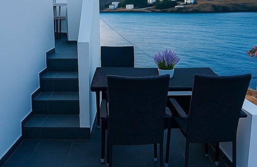 nestled right in front of the sea and just steps from loutra beach in kythnos—where part of the shoreline features thermal springs—this retreat offers panoramic views of the aegean sea Step out onto the private balcony to soak in the serene coastal scenery, perfect for enjoying a morning coffee or an evening glass of wine. A short stroll brings you to a variety of traditional tavernas, cafes, and local markets, for an authentic Cycladic experience.