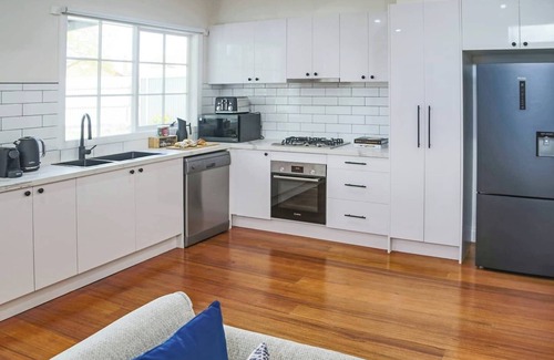 the newly renovated kitchen includes everything you will need; dishwasher, bosch oven, miele gas cooktop, microwave and full size fridge Fully equipped with cooking utensils and cookware for your use. There is a kettle and 4 slice toaster plus a Nespresso coffee machine and milk frother. Coffee pods, a selection teas, and individual portions of sugar are provided.