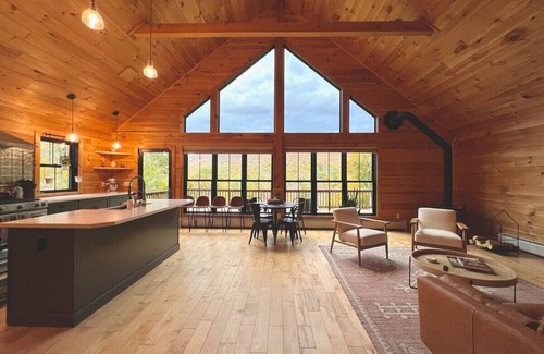 Welcome to The Skyline Cabin! A one-of-kind, modern Vermont escape central to dining, shopping, and culture. Overlooking several mountain ranges, this high-end getaway offers an unparalleled luxury experience in the heart of the Green Mountains. Breathtaking views, two master bedrooms with en suite bathrooms, hot tub, attached garage, modern decor and amenities. come enjoy our truly special piece of vermont!