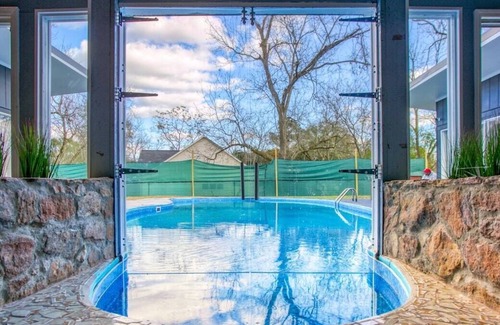 simply stepping outside is old-fashioned and boring Get in the pool in the living area and swim out through the french doors to reach the enormous outdoor part of the swimming pool. The spacious, fully fenced backyard offers additional relaxing places where you can soak up the sun in complete privacy.