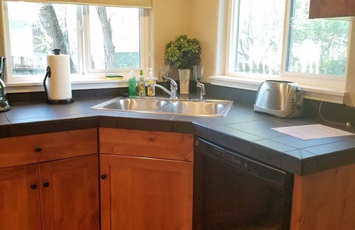 home is relaxing, open, and has a fresh feeling with 2 bedrooms and 2 bathrooms, located on the main floor level One bedroom has a queen bed, and the other guest bedroom has 2 twin beds. Traveling up the spiral staircase, an open loft bedroom awaits you with 2 twin beds. Kids always love the loft! Home has been remodeled to be a great vacation spotlight! Comfortable furnishings, we provide free fast internet and a flat screen TV. Fully stocked kitchen with custom Knotty Alder cabinets. Bedroom linens are what you expect from a fine hotel, down comforters, and crisp clean sheets. Charming private patio off the master bedroom, as well as a private patio off the kitchen, so you may easily enjoy evening barbecues (gas grill included). In addition, enjoy starry nights around the backyard fire pit. a perfect staycation retreat!