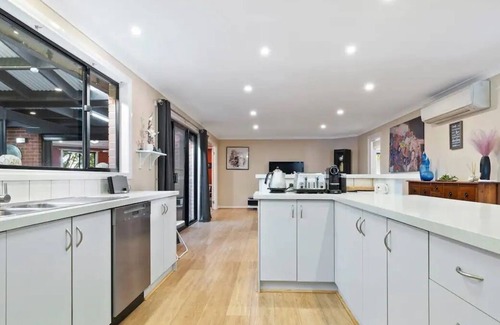 this home offers a fully equipped kitchen that has everything you need to have a comfortable stay, including an oven, cooktop, and dishwasher Being able to unwind and relax is the aim of this home, which is stocked with fresh luxury linen and towels. Each bedroom is fitted with a stand up heater to keep you toasty during the cooler winter months. The open-plan living and dining areas offer a hotel-style entertaining experience, complete with an 8-foot billiard table, wood-fire heater and bar.