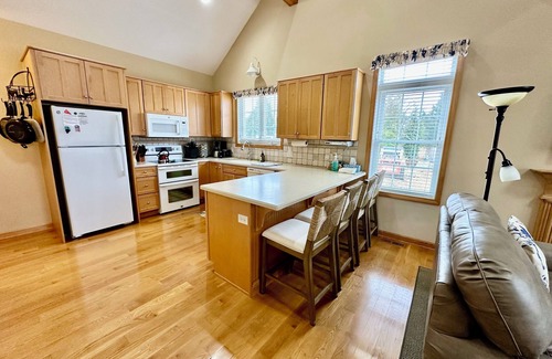 This cottage is truly for the discriminating vacationer, very romantic and beautifully appointed. As you walk in you will notice a mosaic inlaid with flip flops... so inviting. The open floor plan feels spacious with volume ceilings throughout and is oh so comfortable. The living room has two leather couches that are right in front of the gas fireplace...bring on the ambiance! The living room also features a large flat screen TV with both HDTV and Firestick service. The kitchen is well appointed with a lot of counter space that won't disappoint anyone who loves to cook. We have both a Weber charcoal grill and a Weber gas grill for our guests to use. We have also tucked in a full size washer and dryer. The bedroom suite is very spacious with a cathedral ceiling and has a very comfortable king size bed, 2 night tables, 2 dressers, a flat screen TV, and a large walk-in closet. The full bath is to die for with a whirlpool and both indoor and outdoor showers. This home is quality built with upgraded textures including oak floors, tumble marble, & limestone accents. Unlike many Vineyard rentals, we have added central air and a garage (for those who may bring their convertible, or motorcycle). The garage also provides a great covered spot for your bicycles which we strongly encourage you to bring as we are located just off the bike path. Two people maximum, no pets, & non-smokers only, as we try to keep this property super clean and allergen free. Beach chairs, beach umbrella, beach blanket and many more conveniences are included. Perfectly located approximately 1 mile from town (Edgartown) & 1 mile to South Beach, right off the bike path. Relax on the front porch in a pair of Adirondack chairs or flex your muscles at our private basketball court which doubles as a pickleball court. Positively immaculate. We never rent our main house so my family is in tune with your enjoyment of the property. Once you rent this gem it will be hard to go anywhere else! PS: Currently all VTA (Vineyard Transit Authority) buses are free until 9/30/25. So if you don’t wish to take your car over, you can easily get around. Busses also have bike racks on the front so you can ride to another town and bike around it..