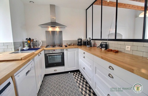 Your vacation rental includes on the ground floor: fitted and fully equipped kitchen, living room, wc. Upstairs: two bedrooms (1 double bed 160x200, two single beds 80x200 and 90x200), bathroom with shower and wc. At your disposal: garden of 180 m² and terrace of 26 m² (exterior being finished). Parking your vehicle on the street (free) Welcome to this charming village house, which has just undergone a beautiful renovation. It will offer you all the comfort you are looking for while being an ideal place to enjoy the region! Discover the Emerald Coast and Penthièvre where the pretty sandy beaches of Pleneuf Val André, Erquy, Sables d'Or les Pins, St Cast Le Guildo (within a radius of 13 km) are waiting for you. that you ... During your stay, be sure to visit Cap Frehel, 17 km away. The walk will take you to the famous Fort Lalatte. A visit to Lamballe, 15 km away, with its national stud farm, its half-timbered houses, its collegiate church, its museum will probably tempt you ... A little further, at 30 km, you can discover the medieval city of Dinan. Come and discover an unparalleled medieval heritage and soak up the charm of the ramparts of this city. Let yourself be tempted by all the beauties of the region, you will be spoiled for choice for your visits!.