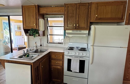 Welcome to Tide’s Edge Escape, a charming cottage/camp, a two minute walk to the famous St. Martin’s sea caves! This 40 foot park model camper features a built on 12x20 sunroom, adding ample living space and views of the Bay of Fundy. There are two decks; one for BBQing and one for dining and relaxing. Tide’s Edge is the perfect home base for your Bay of Fundy and Pathway adventures! The cottage features two queen beds, two televisions, Wi-Fi, lawn games, fire pit, board games, all kitchen amenities, French press, infused tea pot, a tide clock, cozy blankets and extra pillows. The location is quiet and peaceful. Stargazers prepare to be amazed at night, and if you like the sound of waves, just open the patio doors for instant serenity. Don’t feel like cooking? No problem, right across the street are two fantastic restaurants that offer indoor or patio dining or order take out and enjoy on the deck back at Tide’s Edge. The village of St. Martin’s has quaint coffee and ice cream shops, the Quaco Museum, coffee, a pub and much more. The highlight of any trip to St. Martin’s is the outdoor adventures, like beach coming, walking the sea floor and exploring the caves at low tide, sea kayaking and of course, hiking or biking the Fundy Trail Pathway. Welcome to Bay of Fundy escape!.
