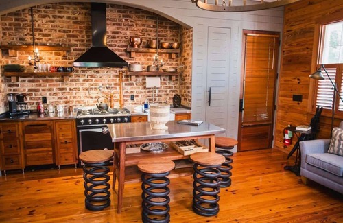 in every bedroom , i provide you with a sound machine as well as smart-charging stations for your electronic devices Enjoy the combination of cypress ship-lap wood walls and heart pine throughout. Most, if not all, heart pine material used dates back to approximately the year 1600.