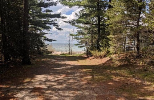 situated steps away from the sandy shores & crystal clear waters of tiny beach, our vacation home is an excellent getaway Snuggle up by the fireplace with loved ones, socialize with friends around the fire pit or at the hot tub, enjoy splendid views on the deck, or put your culinary skills to use in our fully equipped kitchen.