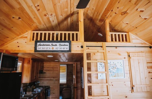 A spacious loft-style tiny cabin, located at Big Water Marina & Campground, directly on Lake Hartwell.