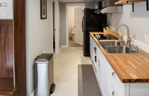 a washer & dryer is available Please note that it is shared with guests in the other home on the property. We are pet-friendly, but we acknowledge that our Tiny Apartment is only big enough for dogs or cats under 30 lbs.