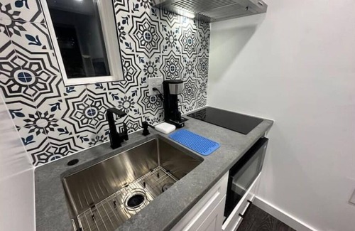 gorgeous sky lights, vaulted ceilings, and an open floor plan make this unique 1 br/1ba feel cozy, calm, and inviting Features a kitchen with fridge, stovetop, microwave and coffee machine, all-new furnishings and fixtures and a queen bed.