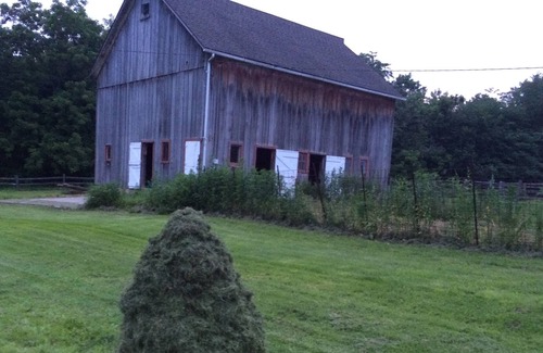 This is a charming, brick rustic 1870's summer kitchen freshly renovated. It is an efficiency with living area including kitchen area, and separate bath with shower. It is stocked with dishes, microwave, frig, nu-wave cook top, toaster oven, coffee pot, new memory foam queen bed with fresh cotton sheets. It sits on our 60 acre hobby farm with mini-horses, mini-cows, and a kitty. Roam our hobby farm at your leisure and enjoy our homemade monster cookies. Rubber boots to traverse creeks provided!.