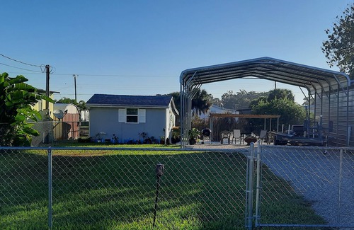 NO REGRETS with an affordable awaycation at "Crappie Cottage"! Crappie is another name for Speckled Perch. Situated on a tranquil canal minutes to Lake Okeechobee & the Kissimee River, you'll experience more than you could imagine. Catch Bass right off the dock! Our cottage is perefectly supplied with EVERYTHING you could possibly think of including grills, a firepit and safe, fenced in covered parking. Our reviews prove why we are Superhosts! Perfect for couples wanting a romantic getaway....